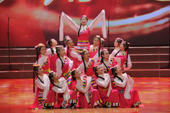 第二乐章:交响乐《红旗颂》、女声小合唱《英雄赞歌》、歌舞表演《赞歌》、舞蹈《唱支山歌给党听》。