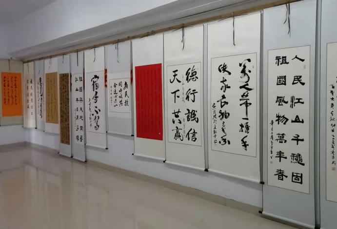 在建党百年之际,为了深入学习贯彻党的十九届六中全会精神,传承红色精神,铸牢中华民共同体意识,弘扬中华优秀传统文化,推进学校美育教育,加强校园文化建设,深化文明校园创建,推动学校“十四五”高质量发展,凝心聚力,鼓舞士气,12月9日下午,由校工会主办、美术学院和书画学会承办,在泉山校区逸夫楼十楼教工之家成功举办了庆祝建党百年主题教职工书画展览。