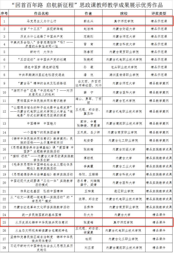 其中,beat365官网马克思主义学院教师郭永兴的作品被评为“回首百年路 启航新征程”思政课教师精品示范课,教师张爱梅的作品被评为“回首百年路 启航新征程”思政课教师精品课件。