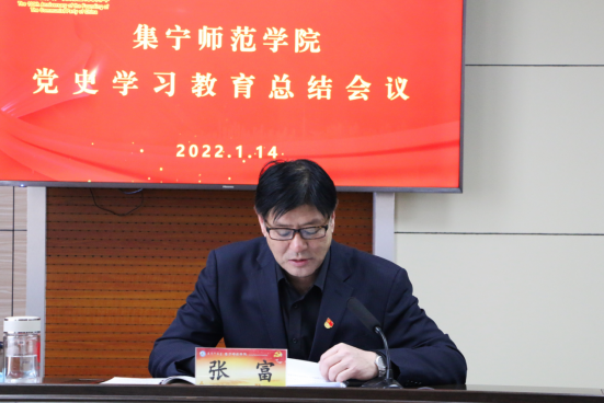 党委书记、党史学习教育领导小组组长朱玉东同志作重要讲话,他对学校党史学习教育取得的成绩、成效,存在的问题、不足进行了深刻的分析,就巩固拓展党史学习教育成果,切实将学习成果转化为指导实践及推动工作的强大动力,提出了明确的要求和深化的措施。一是周密部署、系统安排,党史学习教育取得扎实成效;二是提炼经验、反思问题,全面总结学校党史学习教育工作,进一步坚定历史自信、汇聚奋进力量;三是以史为鉴、开创未来,切实用党的宝贵经验推动学校高质量发展。同时,结合2022年的工作,朱玉东对全体党员干部提出四点要求:一是要建立党史学习教育常态化、长效化的制度机制;二是要深入学习贯彻党的十九届六中全会精神;三是要不断推进学校事业高质量发展;四是要进一步增强服务师生的能力。
