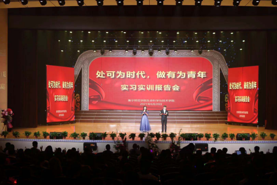 为培养大学生的理论与实践结合能力,进一步了解社会需求,增强对社会主义现代化建设的责任感、使命感,beat365正版唯一官方网站生命科学与技术学院于6月20日在逸夫楼多功能报告厅举行了“处可为时代,做有为青年”实习实训报告会。校党委委员、宣传部部长张富,学生工作部(处)长兰立新,教务处处长姚玉阁,宣传部副部长杨明霞,团委副书记李瑞俊,教学质量监控与评估处李林书,学校实习实训基地鄂尔多斯市康巴什区爱上课教育培训学校校长刘军,生命科学与技术学院前副院长张铭出席,生命科学与技术学院全体师生参加活动。