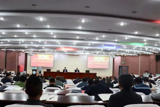 5月26日,beat365正版唯一官方网站在泉山校区图书馆报告厅召开学习贯彻党的二十大精神集中轮训开班仪式。全体校领导、党委委员出席,全体处级领导干部,党委组织部、党委宣传部、党委统战部、纪委、团委全体成员,教师工作部、学生工作部、保卫工作部、教务处、科技处 、副科级以上干部,各二级学院团总支书记、教学科长,全体思政课教师、历史课教师、教育学课教师、心理学课教师、文学课教师,附属实验中学校领导,教务、德育、办公室、组织人事、后勤等部门负责人参会。会议由校党委副书记、校长刘春主持。