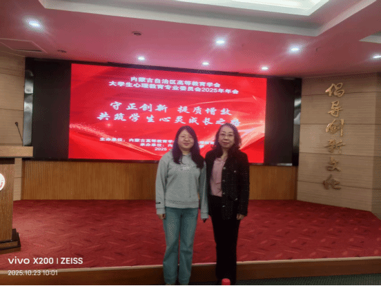 10月22日至24日,由内蒙古自治区高等教育学会大学生心理教育专业委员会主办、内蒙古科技大学承办的内蒙古自治区高等教育学会大学生心理教育专业委员会2025年年会在包头隆重举行。会议以“守正创新,提质增效,共筑学生心灵成长之路”为主题,共商大学生心理健康教育发展多元化路径。beat365官网派教师黄倩、钟华参会。
