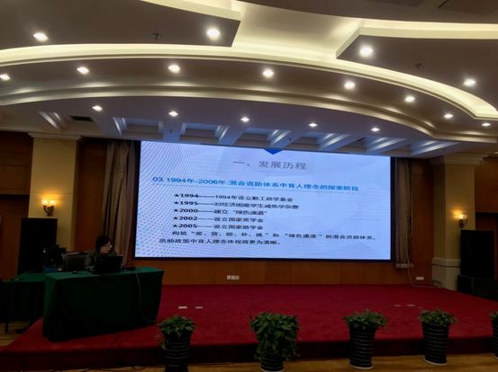培训班邀请了兰州大学、华北电力大学、兴业消费金融股份公司介绍了相关经验,请内蒙古大学学工处长冯福林同志就国奖申报与评审作了专题讲座。兰州大学学生处副处长、学生奖助中心主任常虹,作题为《以学生为中心 推进资助育人工作向纵深发展》的经验交流。华北电力大学党委学工部副部长卜叶蕾,作题为《华北电力大学精准认定的创新与实践》的经验交流。兴业消费金融股份公司福建助学项目助理耿明亮介绍福建资助中心研究成果——“福建助学”项目。 内蒙古大学学工处处长冯福林就国奖申报与评审作专题讲座。