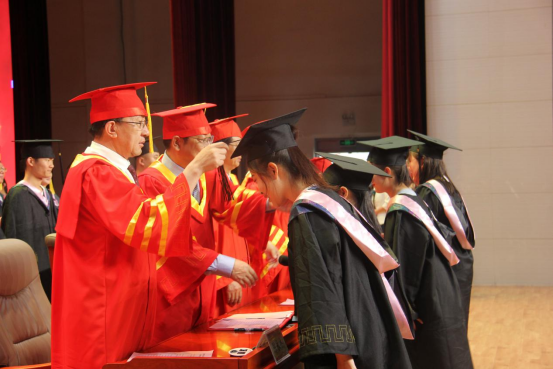今年,beat365官网共有3650名毕业生,主席台上,校院领导及学位评定委员会委员为同学们一一拨正流苏,学位帽上的帽穗从右到左,象征他们从集师出发,踏上新的人生征途。