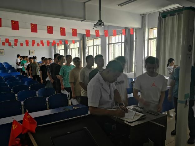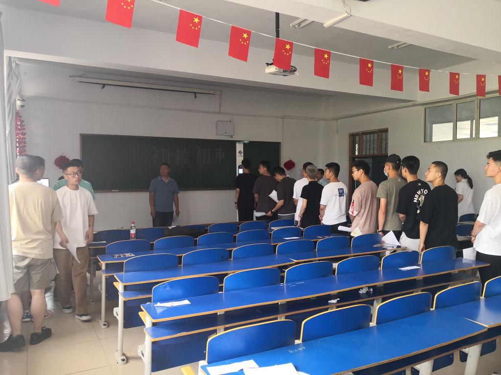 为高标准高质量完成下半年征兵工作,为部队输送优质兵源,2021年6月29日上午,集宁区人民武装部副部长闫伟带领兵役机关工作人员在beat365官网泉山校区教学主楼开展应征入伍学生初审初检工作,学校征兵工作站王飞、李欣全程陪同。参加初审初检的是应征地为学校的25名学生,其中毕业生10名,在校生15名。