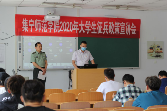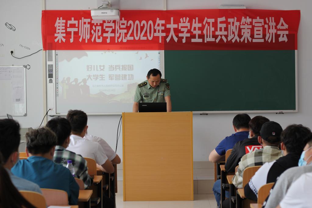 宣讲会特邀请乌兰察布军分区、乌兰察布市政府征兵办公室参谋王贵星就学生关心的应征入伍基本条件、征集流程、大学生参军入伍优惠政策、学籍保留和学费补偿等内容进行了详细的解读。会议由学生处副处长武装部部长王飞主持,参加会议的有应征入伍报名和有意向应征入伍的同学们,集宁区人民武装部景少远参谋,学校武装部李欣干事、董春岐老师、王朝老师等。