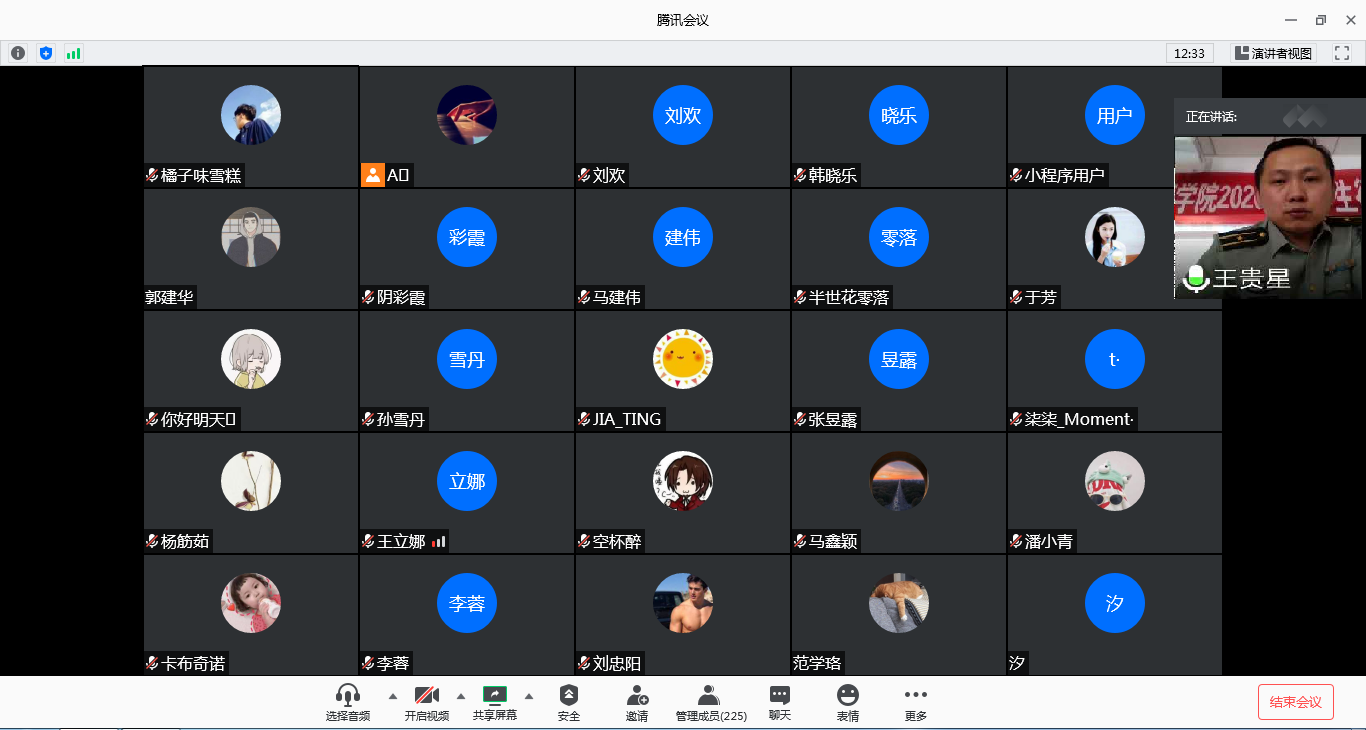 为减少聚集,线下会场由已应征入伍报名的和应征入伍意向的学生代表参加宣讲会;线上采用腾讯会议形式举办,共有200多名同学参加线上宣讲会。