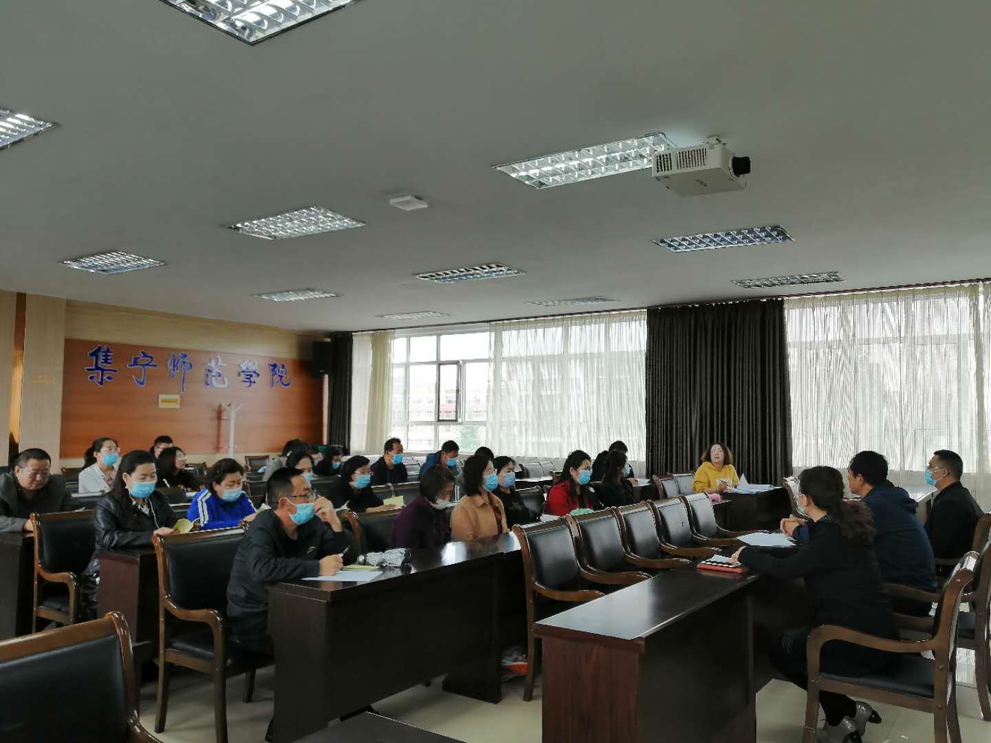 综合科科长杜雪梅解读《beat365正版唯一官方网站关于教职工返岗相关事宜的通知》、《教职工开学返岗工作指南》,就教职工考勤管理相关要求作了强调。
