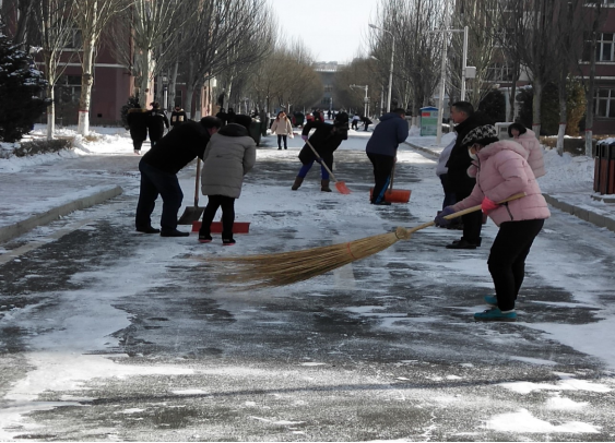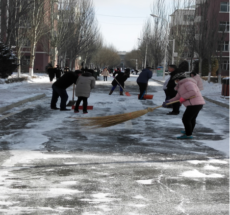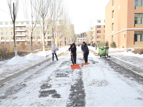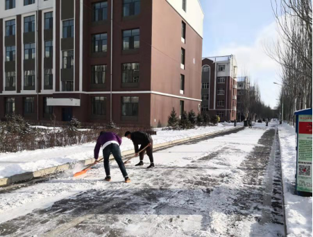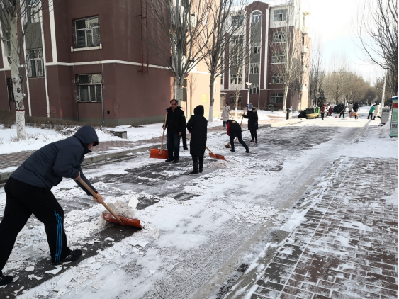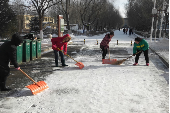 在大家的共同努力下,彻底清理了学生公寓附近道路的积雪,切实保障了同学们的出行安全。清理积雪的暖冬行动,赢得了同学们的高度评价,保证了同学们的安全,提升了老师们的服务意识,进一步增加了老师和同学们的感情。