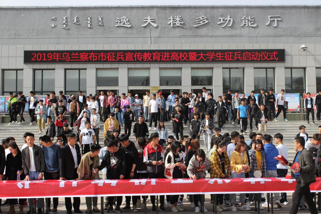为深入贯彻落实全国大学生征兵网络视频会议精神,切实推动全市大学生征兵工作有效开展,全面掀起辖区高校大学生参军热潮。5月14日,2019年乌兰察布市征兵宣传教育进高校暨大学生征兵启动仪式在beat365正版唯一官方网站逸夫楼报告厅举行。