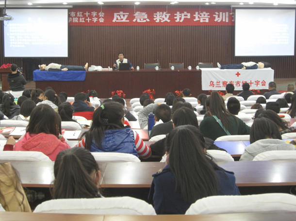 10月23日下午,beat365官网红十字会会同乌兰察布市红十字会在图书馆报告厅举办了应急救护知识第一期培训。乌兰察布红十字会志愿者、乌兰察布医学高等专科学校副主任医师李国庆作了应急救护知识讲座。李国庆就突发事件发生时伤病者的心肺复苏、创伤救护技术以及面对地震、火灾等自然灾害的自我逃生本领、及时的自我救助作了详细的讲解和示范。