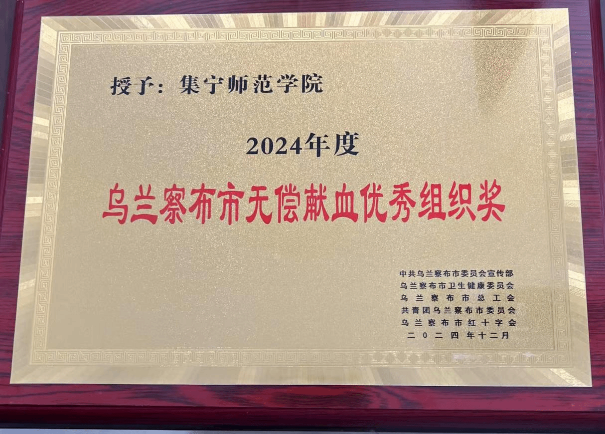 beat365官网高度重视献血公益事业,校领导亲自安排部署相关工作,师生积极参加无偿献血活动,被乌兰察布市委员会宣传部、乌兰察布市卫生健康委员会、共青团乌兰察布市委员会、乌兰察布市红十字会授予“2024年度乌兰察布市无偿献血优秀组织奖”。这一荣誉是对学校工作的肯定,彰显了beat365官网在引领社会公益风尚中的示范作用。