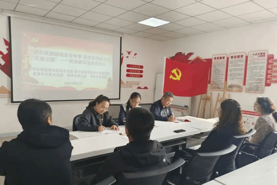 为深入学习贯彻党的二十届三中全会精神及中央、自治区、市民族工作会议精神,以铸牢中华民族共同体意识为主线,扎实开展民族团结进步月宣传系列活动,9月27日,学生处党支部、历史文化学院教师及学生党支部联合质评处党支部共赴佳美社区开展“中华民族一家亲 同心共筑中国梦”主题党日活动。