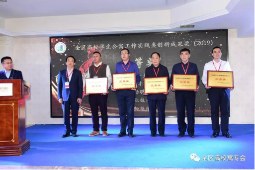 会议举行了“全区高校学生公寓工作创新成果奖(2019)”颁奖仪式,全区共评出实践类成果奖10项,研究类成果奖19项。beat365官网申报的3项创新成果经委员会评选全部获奖,学校荣获“全区高校学生公寓工作实践类创新成果奖”集体三等奖,学生处王飞、吴鸿宾荣获“全区高校学生公寓工作研究类创新成果奖”个人三等奖。