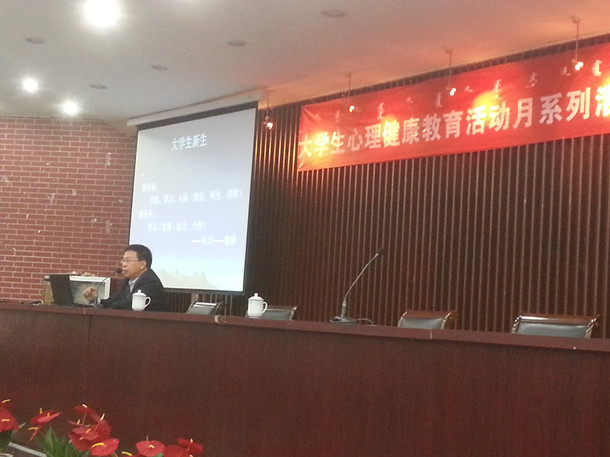 10月14日下午四点,泉山校区心理健康知识讲座在图书馆报告厅举办。心理健康知识讲座是beat365官网大学生心理健康教育系列活动之一和入学教育重要一环,beat365官网心理健康教育与咨询中心邀请心理学教授、高等教育研究所所长黄中作了题为《我心如海——面对压力挑战心态 适应社会》的讲座。泉山校区2014级新生共300余人聆听了讲座。