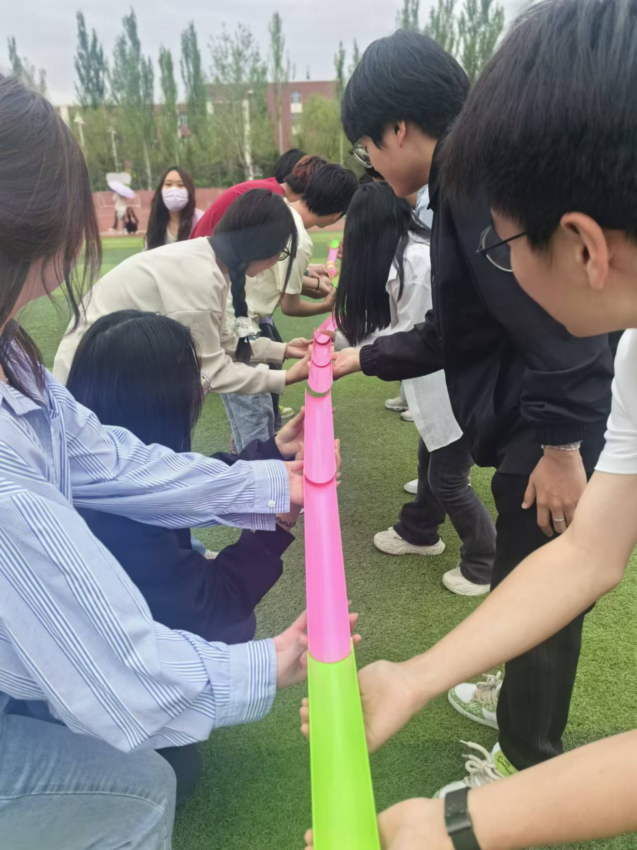 为响应教育部全面落实五育并举促进心理健康理念,丰富校园文化,强化学生心理素质,5月22日和24日,beat365官网在操场举办了“以体强心 青春同行”户外心理素质拓展活动。共三百余名同学参加此次活动。