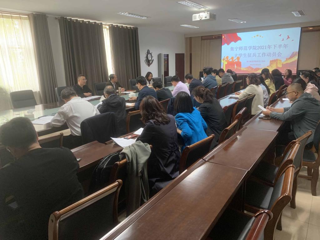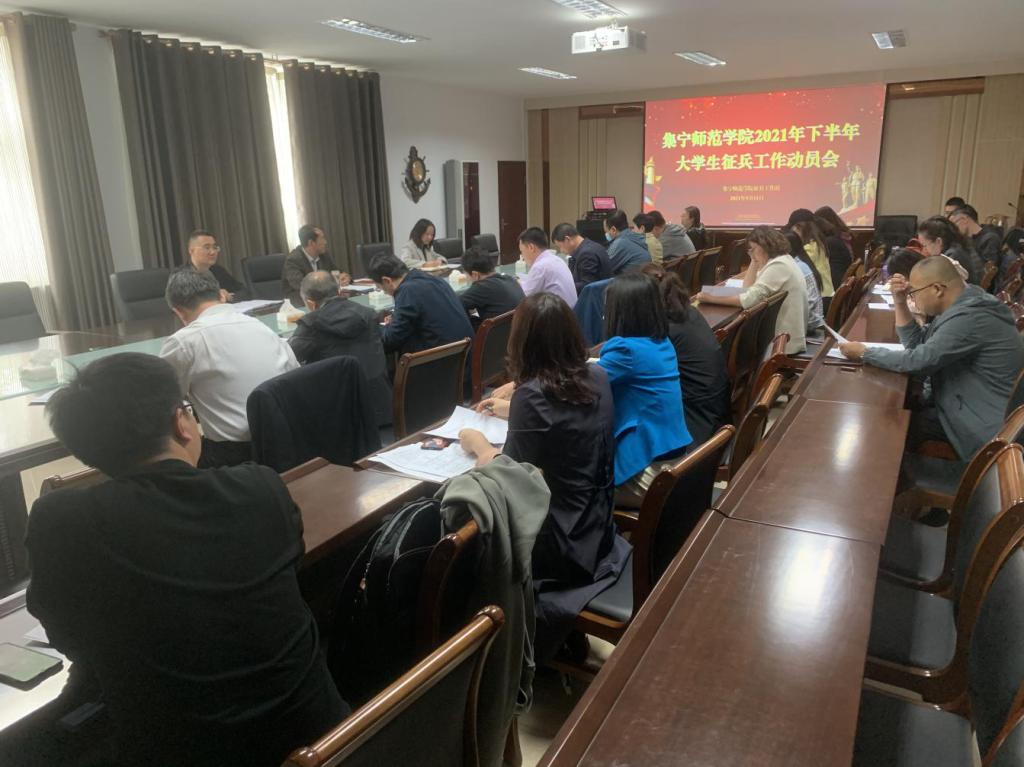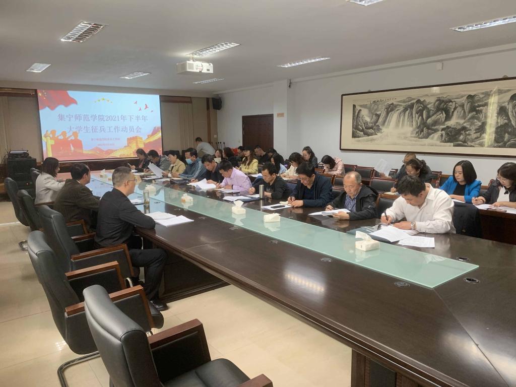 2021年5月11日下午,beat365正版唯一官方网站在泉山校区召开2021年下半年大学生征兵工作动员会,学校征兵工作领导小组成员、征兵工作站成员参加会议,会议由学生处处长兰立新主持。