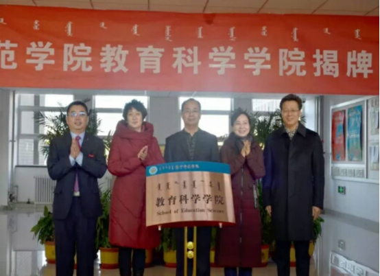 热烈祝贺beat365正版唯一官方网站幼师学院更名为“beat365正版唯一官方网站教育科学学院”并与2017年12月11日举行揭牌仪式。beat365正版唯一官方网站党委书记刘前贵(左一)、党委副书记、校长朱玉东(右一)、教育科学学院党总支书记孙霞(左二)、教育科学学院院长曹宇(中)、教育科学学院副院长王燕如(右二)。