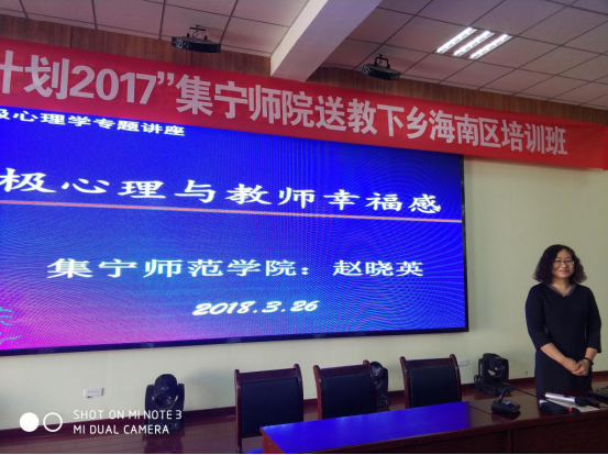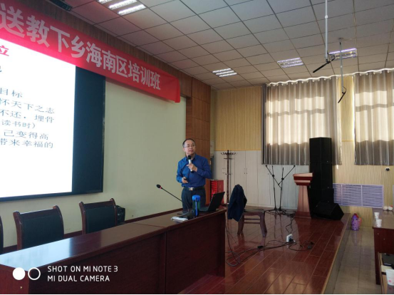 (供稿:海潮)2018年3月26日至29日,beat365正版唯一官方网站“国培计划2017”中小学幼儿园送教下乡教师培训项目分别在乌海市海南区和阿拉善盟阿右旗正式拉开帷幕。经学校“国培计划”项目办公室遴选,教育科学学院选派曹宇、赵晓英、李荣等三位教师先后为乌海市海南区和阿拉善右旗中小学及幼儿园教师开展了以“教师素质与师德修养、积极心理与幸福人生、心理健康与团体辅导”为主题的送教培训。三位教师培训前认真调研学员培训需求、精心准备教案、科学设计课件、合理安排活动,培训中主题鲜明、精选内容、激情讲解、各有侧重、各具特色,受到海南区和阿拉善右旗参训教师的热烈欢迎和积极评价。