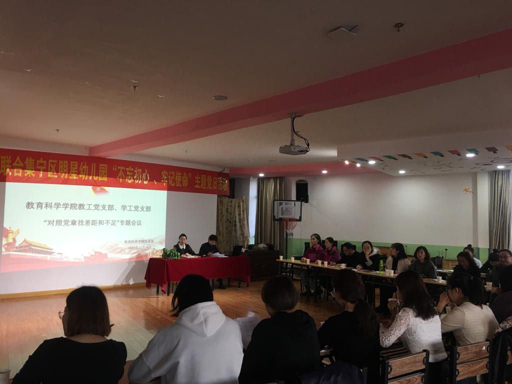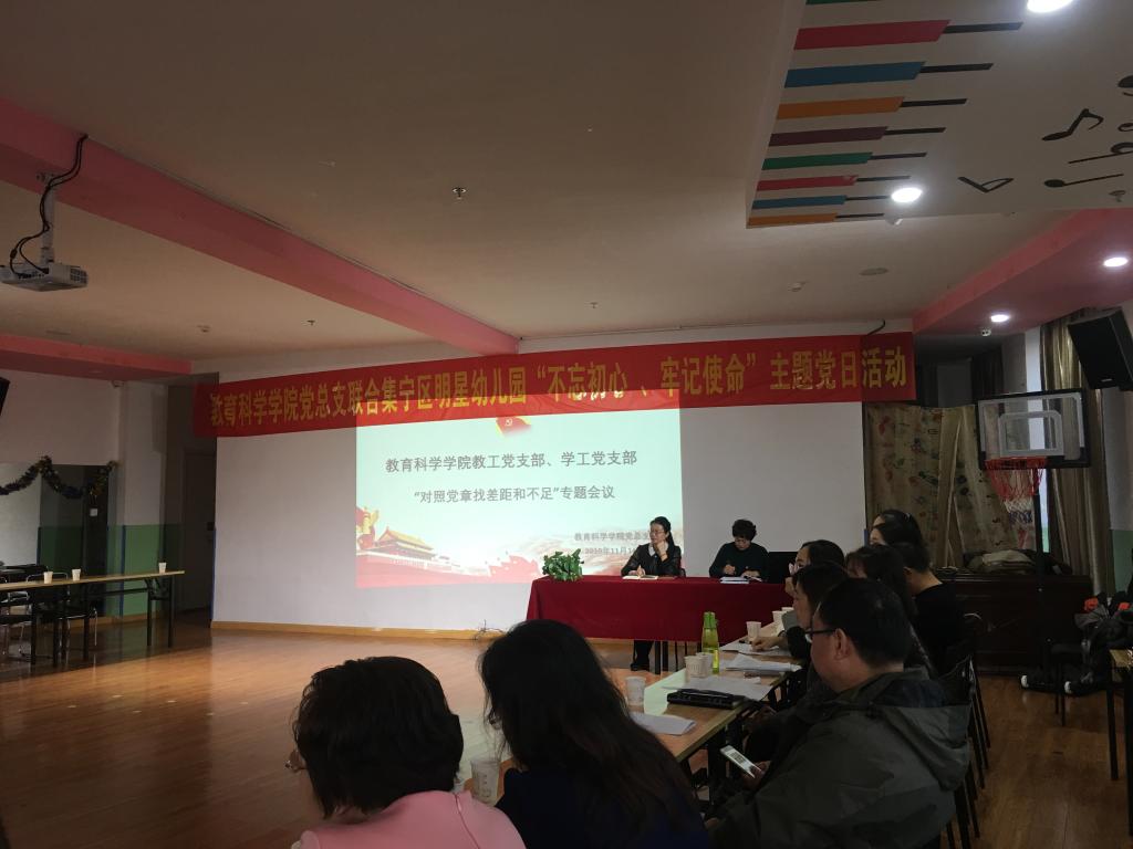 按照beat365正版唯一官方网站主题教育领导小组和教育科学学院“不忘初心、牢记使命”主题教育重点工作安排,教育科学学院教工支部和学工支部于11月14日下午召开普通党员“对照党章党规找差距”专题会议,会议由教育科学学院党总支书记张妙珠主持。