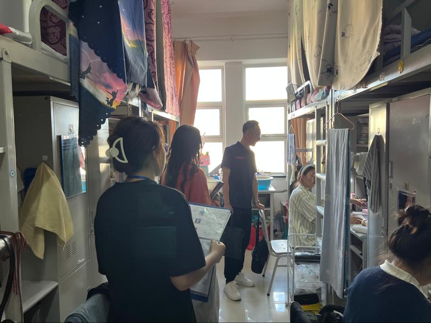 6月3日下午,教育科学学院党总支副书记韩超对学生公寓1号、2号、3号楼宿舍进行安全隐患检查,检查过程中韩超老师叮嘱同学们不得违规使用大功率电器、不随意更改和加装电源线路,要树立安全用电意识,自觉做到安全用电,做到人离关灯、人离断电。以防电线短路,负荷增压造成安全事故。教育科学学院学生会部分同学陪同检查。