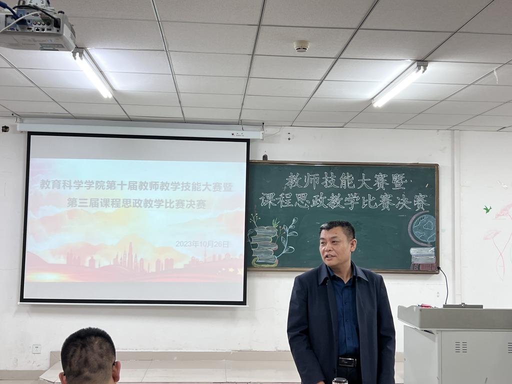 为进一步提升课堂教学质量,推进课程思政建设,充分发挥教学比赛在提高教师队伍素质中的引领示范作用,教育科学学院于2023年10月26日举办了第十届教师教学技能大赛暨第三届课程思政教学比赛决赛,校党委委员、副校长李景杰、教务处副处长高扬、教务科长韩净宇观摩了比赛。