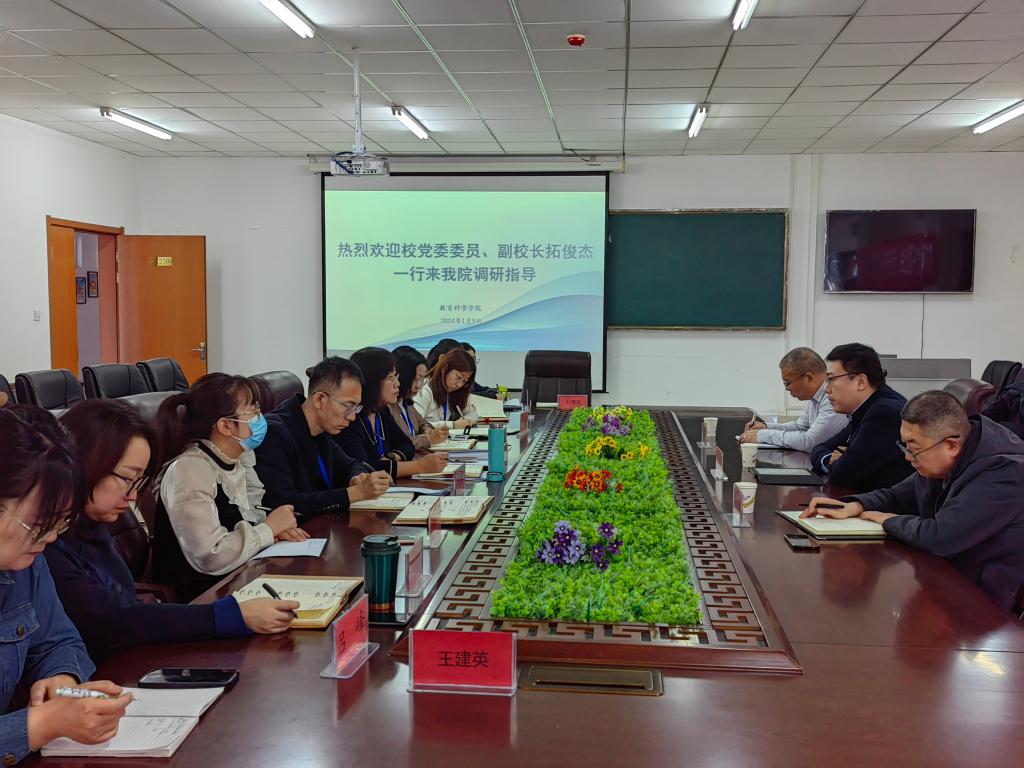 1月9日,校党委委员、副校长拓俊杰深入教育科学学院调研指导工作。学生工作部(学生处)部长(处长)闫闳、校园安全管理处负责人张军儒陪同调研。教育科学学院班子成员、各系(教研室)主任、各科室负责人、辅导员、班主任代表参会。