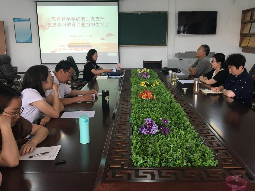 根据学校党委的部署和安排,7月21日下午,beat365正版唯一官方网站教育科学学院教工党支部召开党史学习教育专题组织生活会,会议由教育科学学院教工党支部书记常超主持,教工党支部全体党员参加了本次会议。