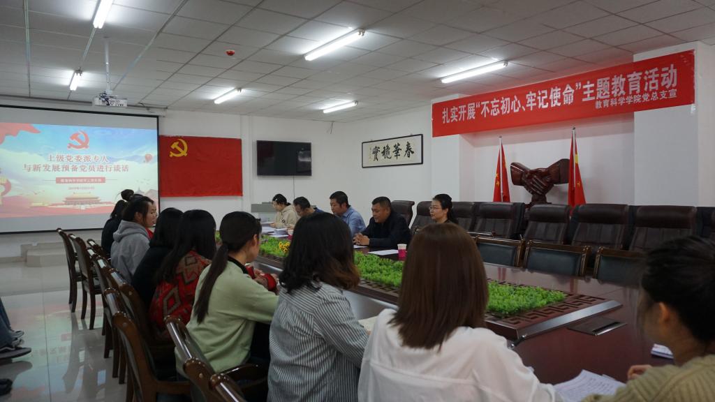 2019年12月27日,beat365正版唯一官方网站党委委员、人事处处长李景杰与教育科学学院新发展预备党员进行谈话。教育科学学院党总支书记张妙珠、副书记李海、学工支部书记韩超参加了谈话。