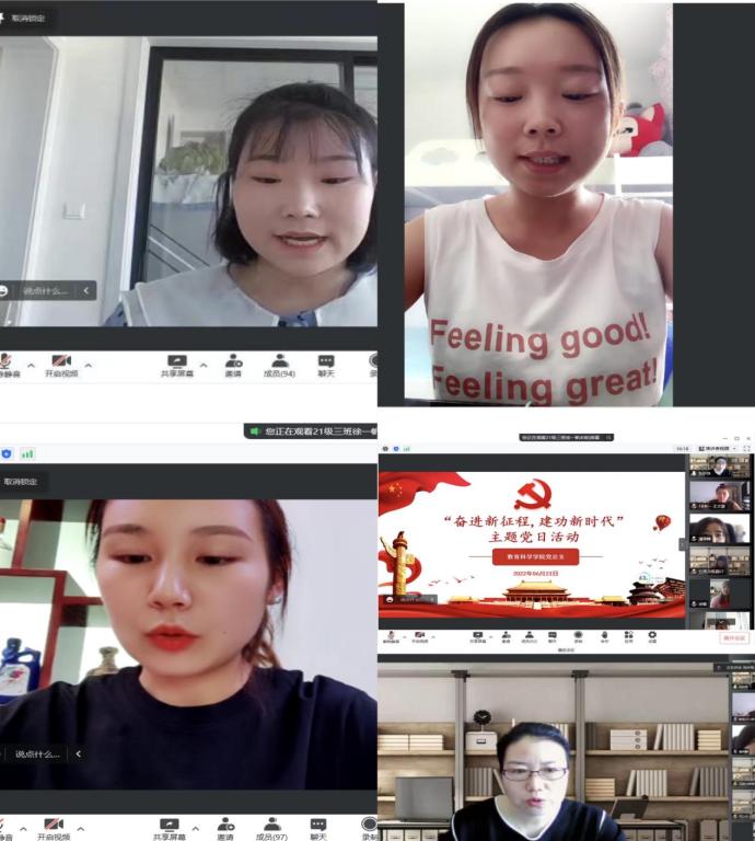 师生党员们集体观看了学习视频《奋进新征程建功新时代 ·走进老区看新貌》。学生党员代表们围绕活动主题精心准备了朗诵、演讲等内容,来表达对党、对祖国的无限热爱和最美好的祝福。