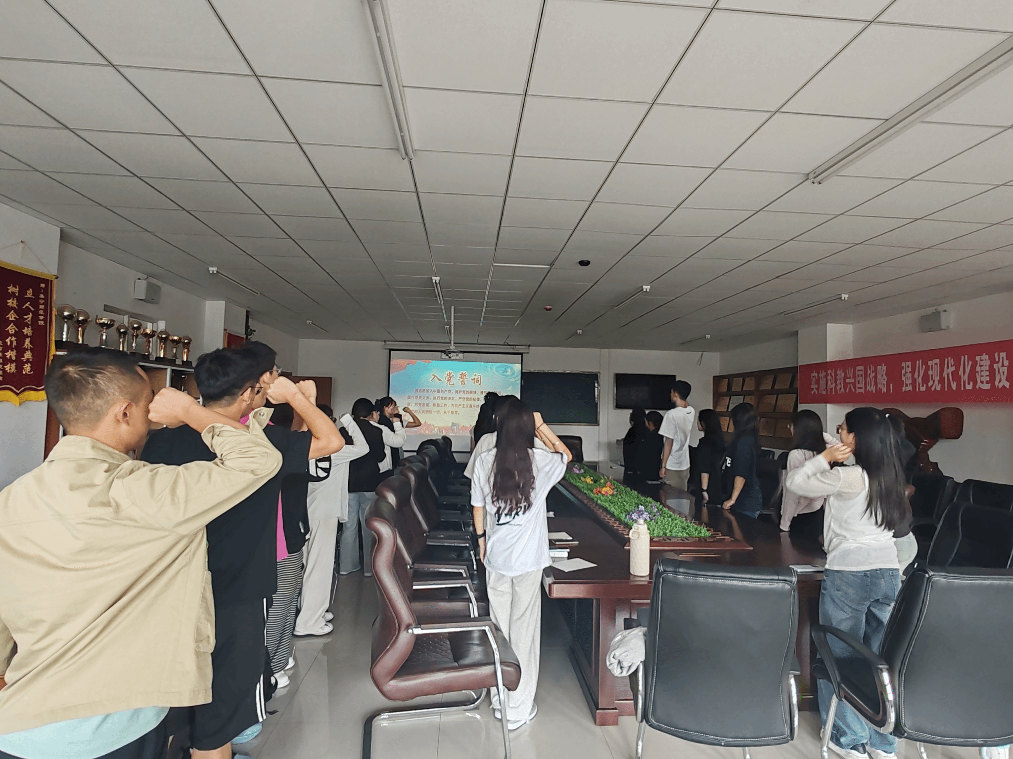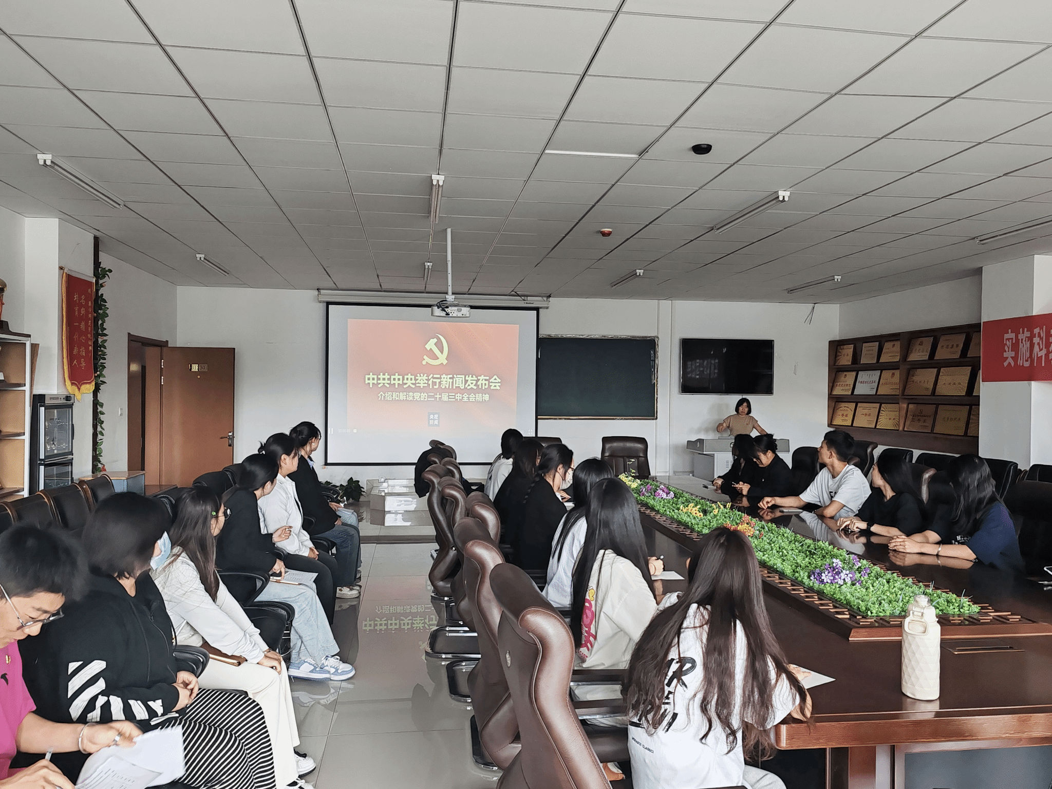 活动中,大家集中收看了中共中央解读党的二十届三中全会精神新闻发布会。接下来,全体党员同志集体宣誓,重温入党誓词,并进行分享交流。
