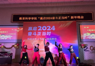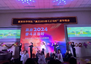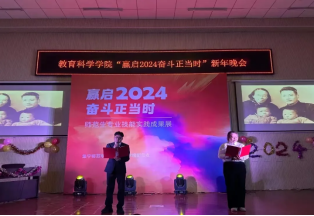 2023年12月28日,教育科学学院举办了“赢启2024,奋斗正当时”迎新年晚会。教育科学学院领导班子,学工办、班主任、辅导员及300余名学生参加了本次晚会。