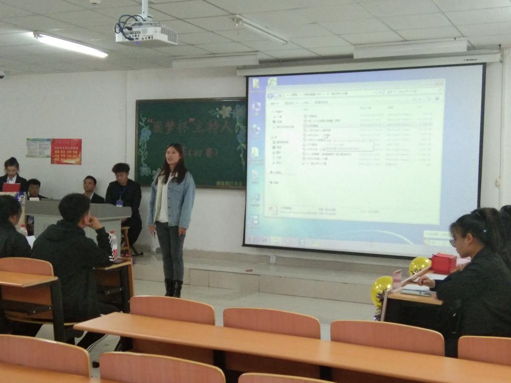 比赛共分两个环节进行,第一环节为自我介绍和模拟主持,第二环节为妙语连珠,在比赛过程中每位选手都充分地发挥了自己的现场应变能力和语言表达能力,赛中由文艺部的张乐璇同学演唱了一首《少年中国》缓解了比赛现场紧张气氛。赛后教育科学学院团总支学生会副主度杨增荣对本次比赛进行了点评,从选手服装到现场发挥能力等方面都给予了建议。