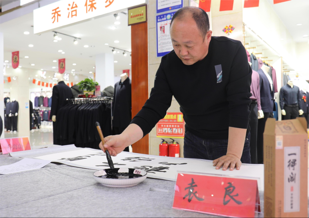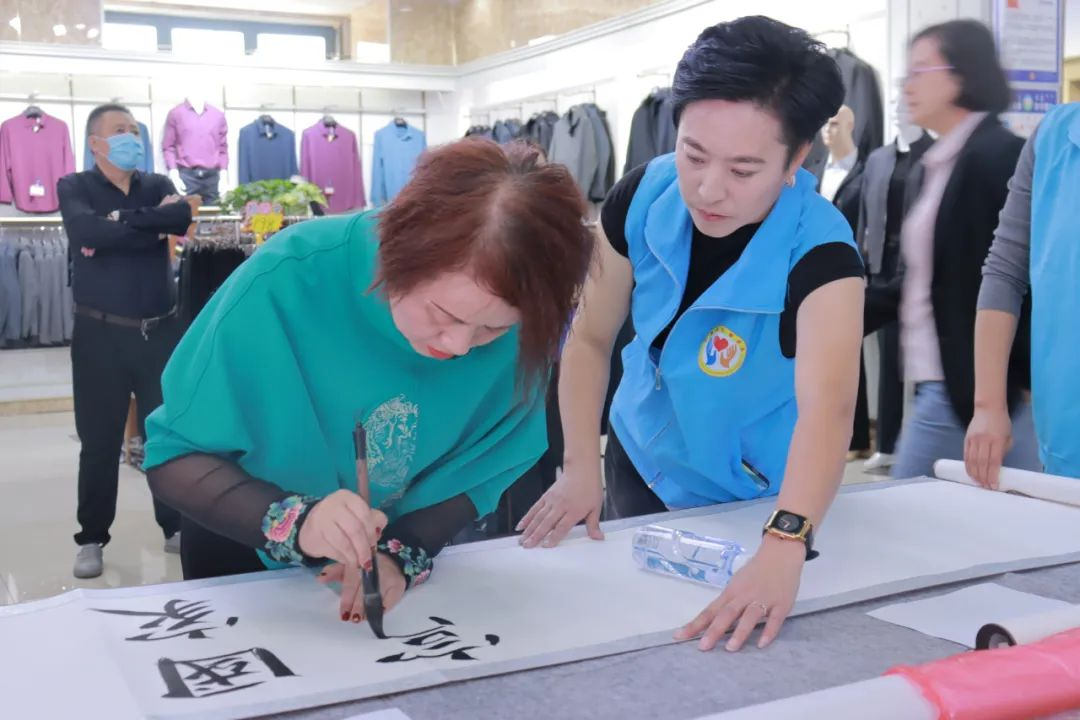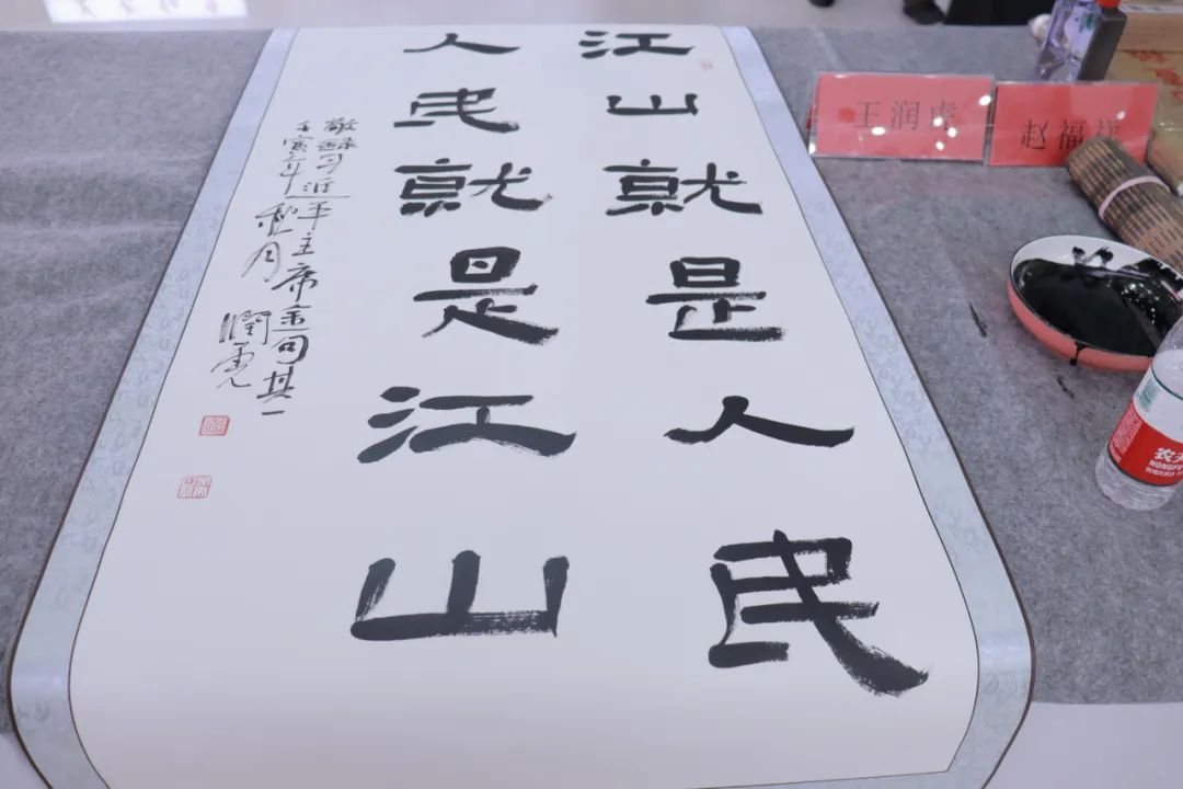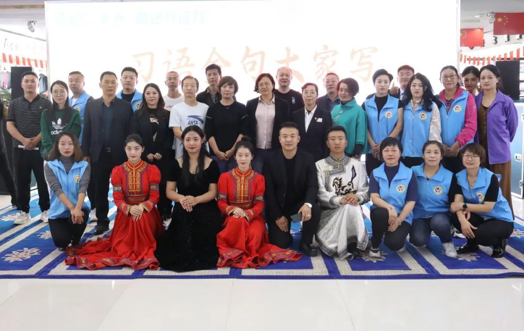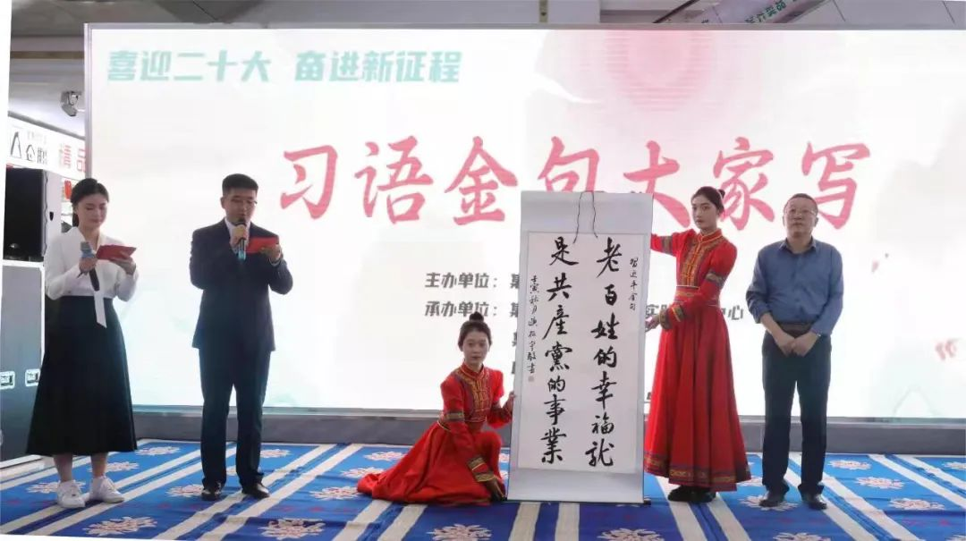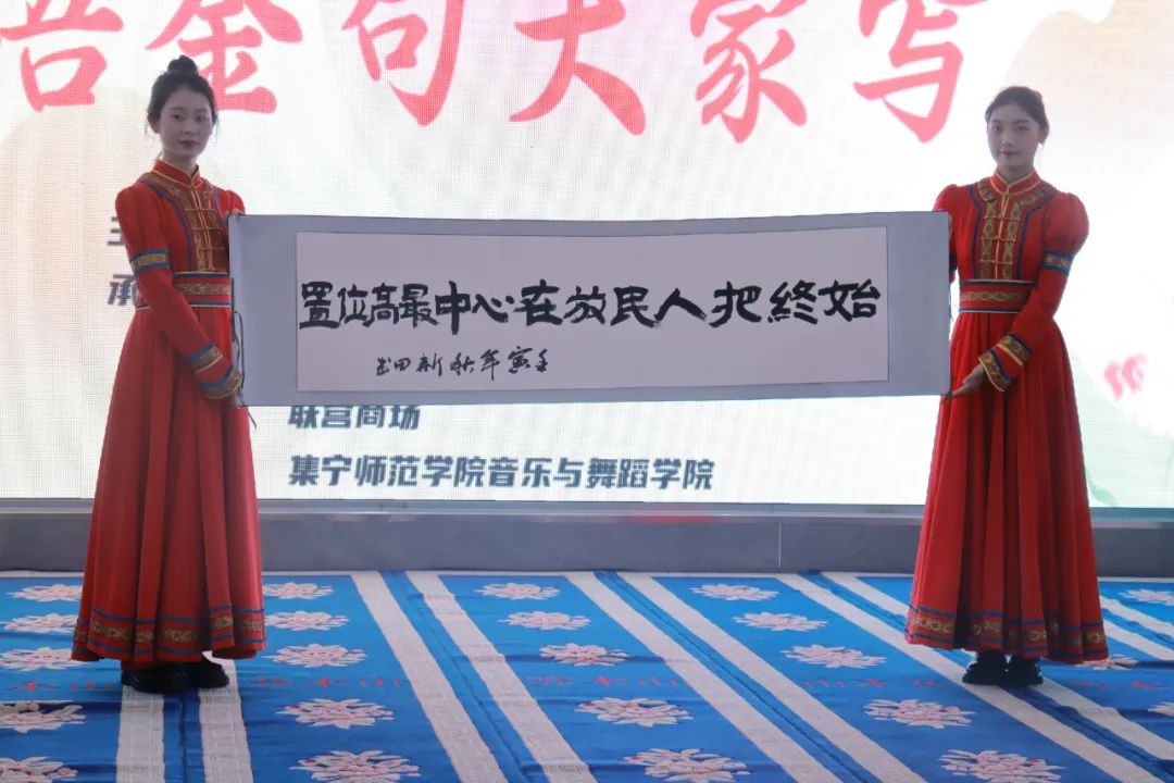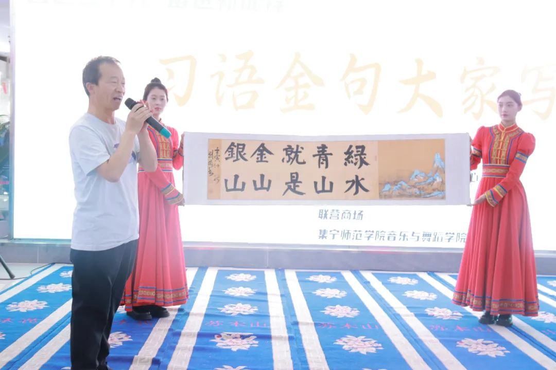 跟随着这段铿锵有力的声音,集宁区联营商场正在举行一场别开生面的书法活动。现场气氛热烈,书法家们、书法爱好者与居民群众相聚一堂,以书法作品的形式呈现“习语金句”,让每一位参与活动的干部群众深切感受习近平总书记浓浓的爱民之情和为民之心,进一步推动习近平新时代中国特色社会主义思想“飞入寻常百姓家”。
