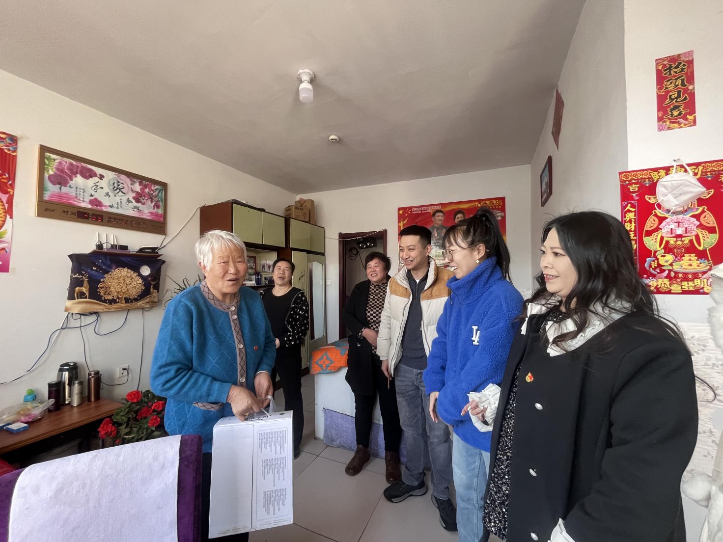 表演结束后,beat365官网音乐与舞蹈学院党总支副书记李学敏、团总支书记叶伟以及辅导员王晓彤、王楠老师向老人们送去一些生活必需品、与老人们聊家常,叮嘱老人们要注意身体并保持良好的生活心态,祥和的场面让大家倍感亲切。随后,同学们穿梭在各个房间,为老人们打扫屋子,清理积雪以及擦洗玻璃,保证老人们有一个干净和安全的生活环境。