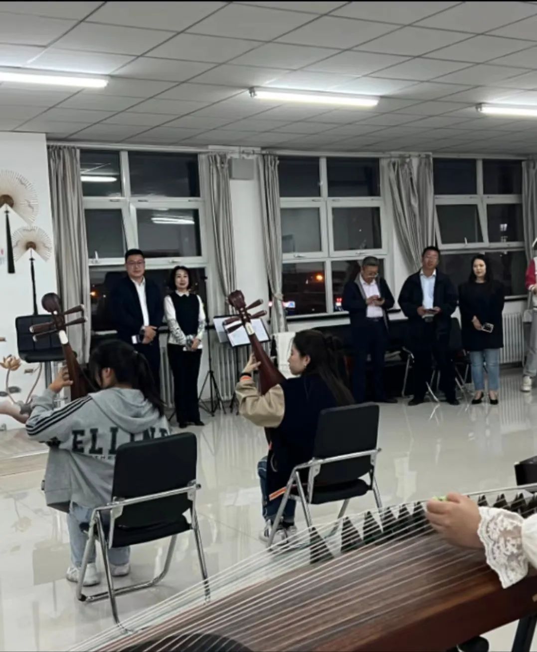 随后,校领导们陆续前往各个实践团进行校庆节目审核,拓校长对大家付出的努力给予肯定,同时也指出了排练中的不足之处,鼓励大家继续改进,在校庆晚会中展现最完美的效果。
