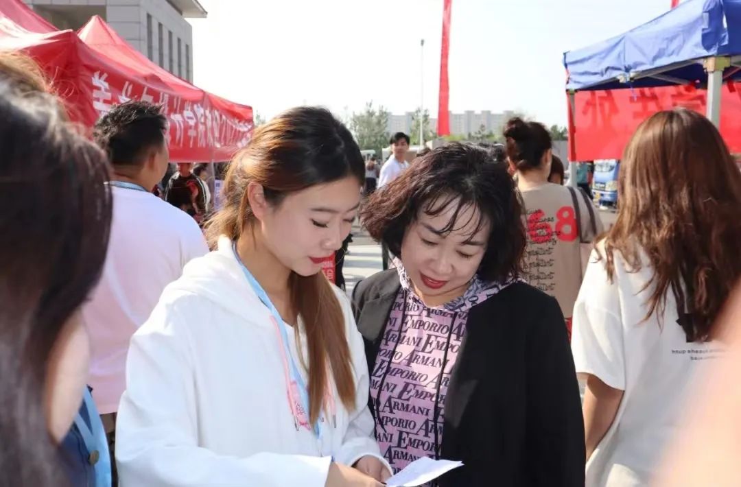 细心地回答新生与家长的问题