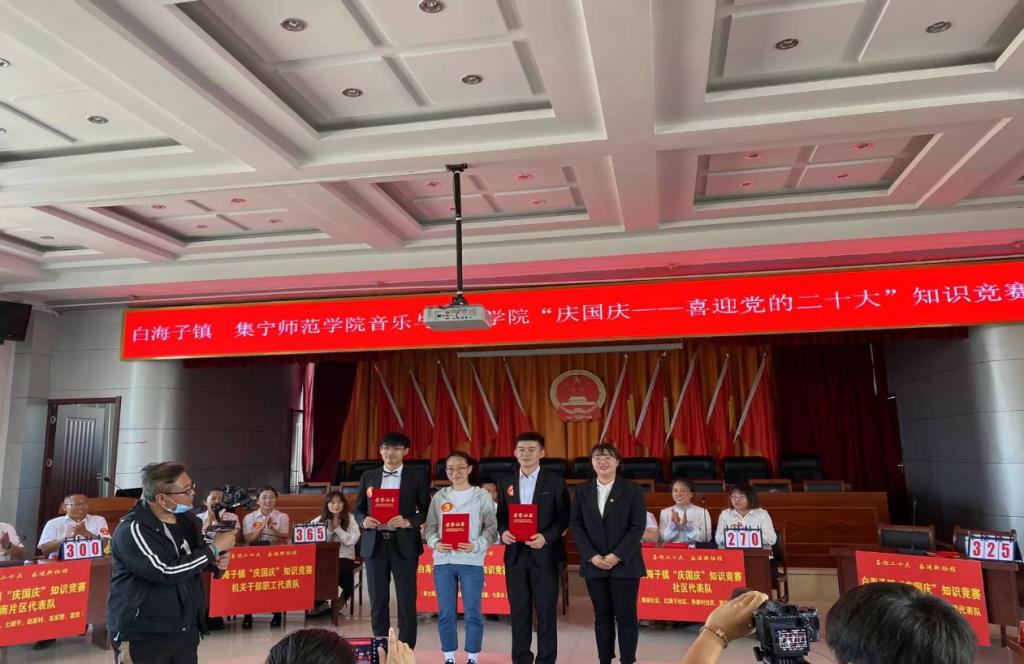 2022年9月30日上午8点半,音乐与舞蹈学院与白海子镇联合举办“庆国庆——喜迎党的二十大”知识竞赛活动,音乐与舞蹈学院党总支书记赵有军、党总支副书记李学敏出席了本次活动。
