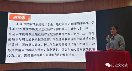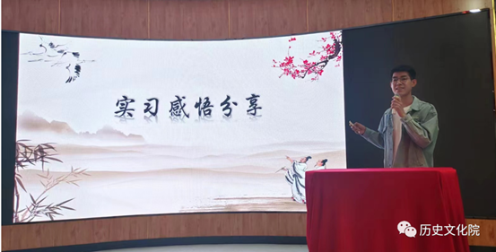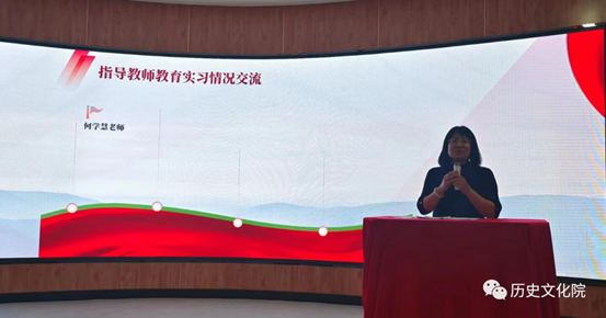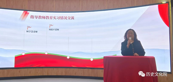报告会上,实习生代表张巧、常远、孙宏影、韩慧轩四位同学从在校外实习的感悟、高中实习的感悟、初中实习的感悟,通过视频、说课、调研报告等形式分享教育实习带给自己的收获、自信以及成长为一名合格历史学科教师的坚定信心。