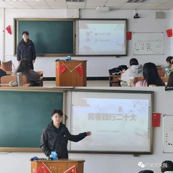 为做好 2023年春季学期开学后的各项教育引导工作,加强大学生思想政治教育,厚植爱国主义情怀,强化价值引领,促进学生健康成长,响应学校号召,积极组织全院同学开展“青春践行二十大”的主题班会。