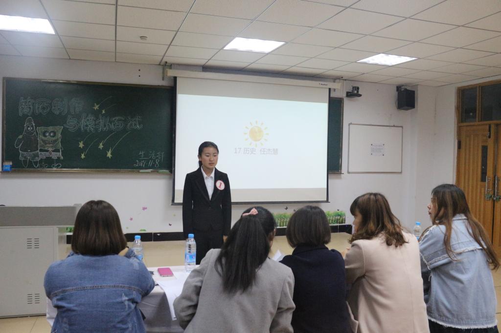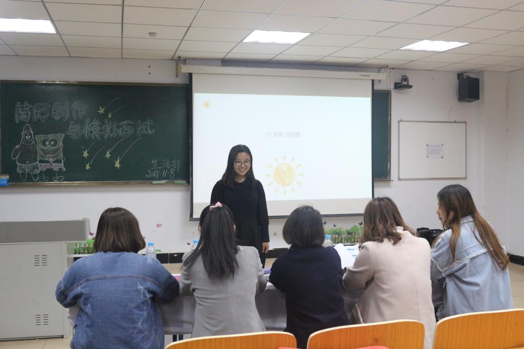 2017年11月8日,我系简历制作与模拟面试比赛于主教楼420举行。学生会部分部部长担任本次比赛的评审人员。参加本次活动的选手通过提前上交的个人简历和现场问答的面试形式进行参赛。每名参赛选手都对自己进行了简单详细的自我介绍,模拟面试以个人面试的职业岗位展开,每位参赛选手都充分展现出自己对待面试岗位的自信和热情,并在评审人员的提问中充分展示个人的工作态度,工作方法以及处理问题的能力,在每位选手身上,我们都看到了来自新一代青年学生不同的风采。