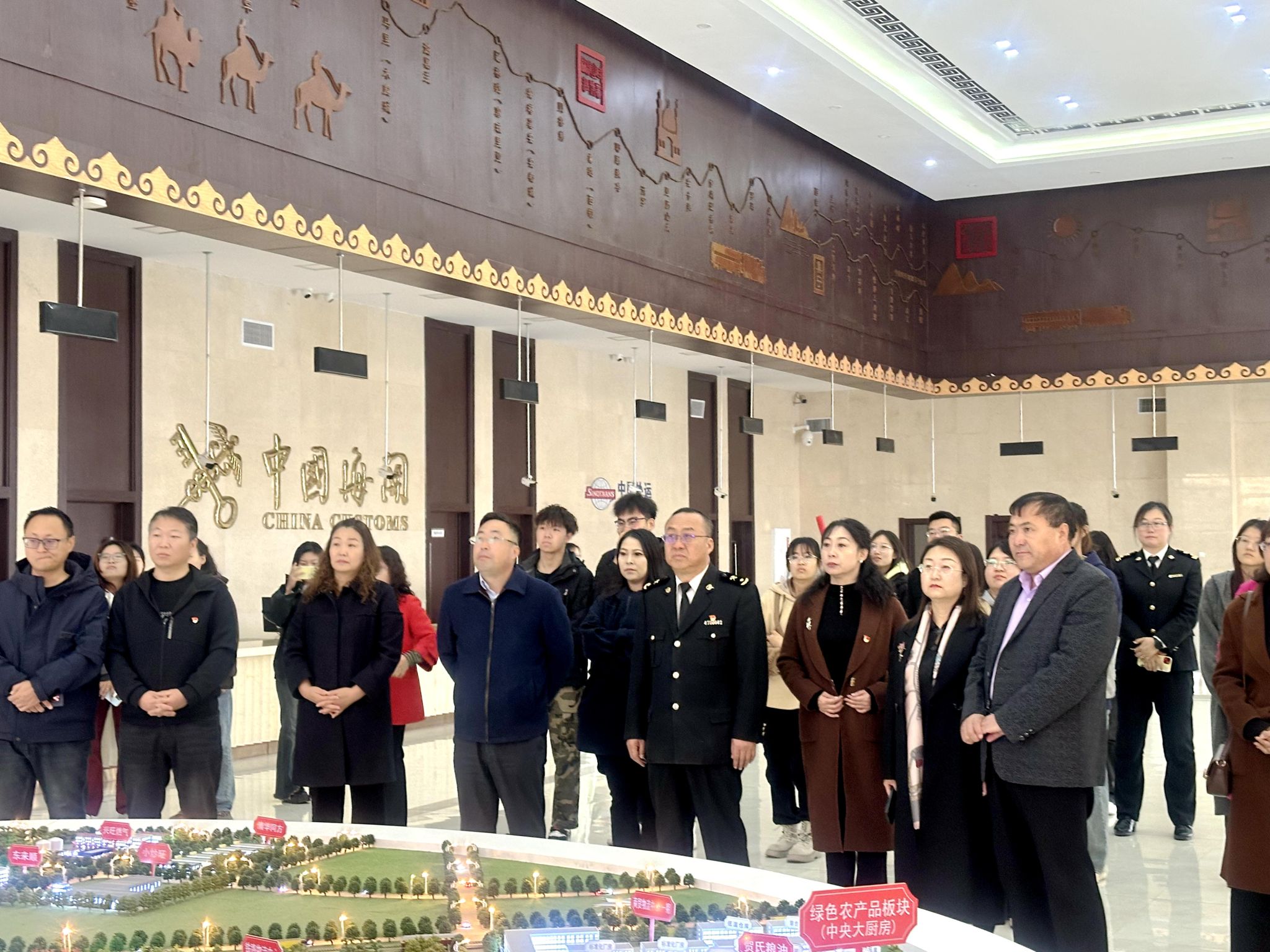 按照活动日程安排,党员们先来到乌兰察布市机场,体验机场国际通道的出入境检验检疫流程,并听取了临空产业园片区和机场国际通道设置情况。随后党员们参观了七苏木国际物流园区,现场听取七苏木国际物流园区情况和保税物流中心(B型)及中欧班列发展过程及未来展望。最后,大家进行合影留念。