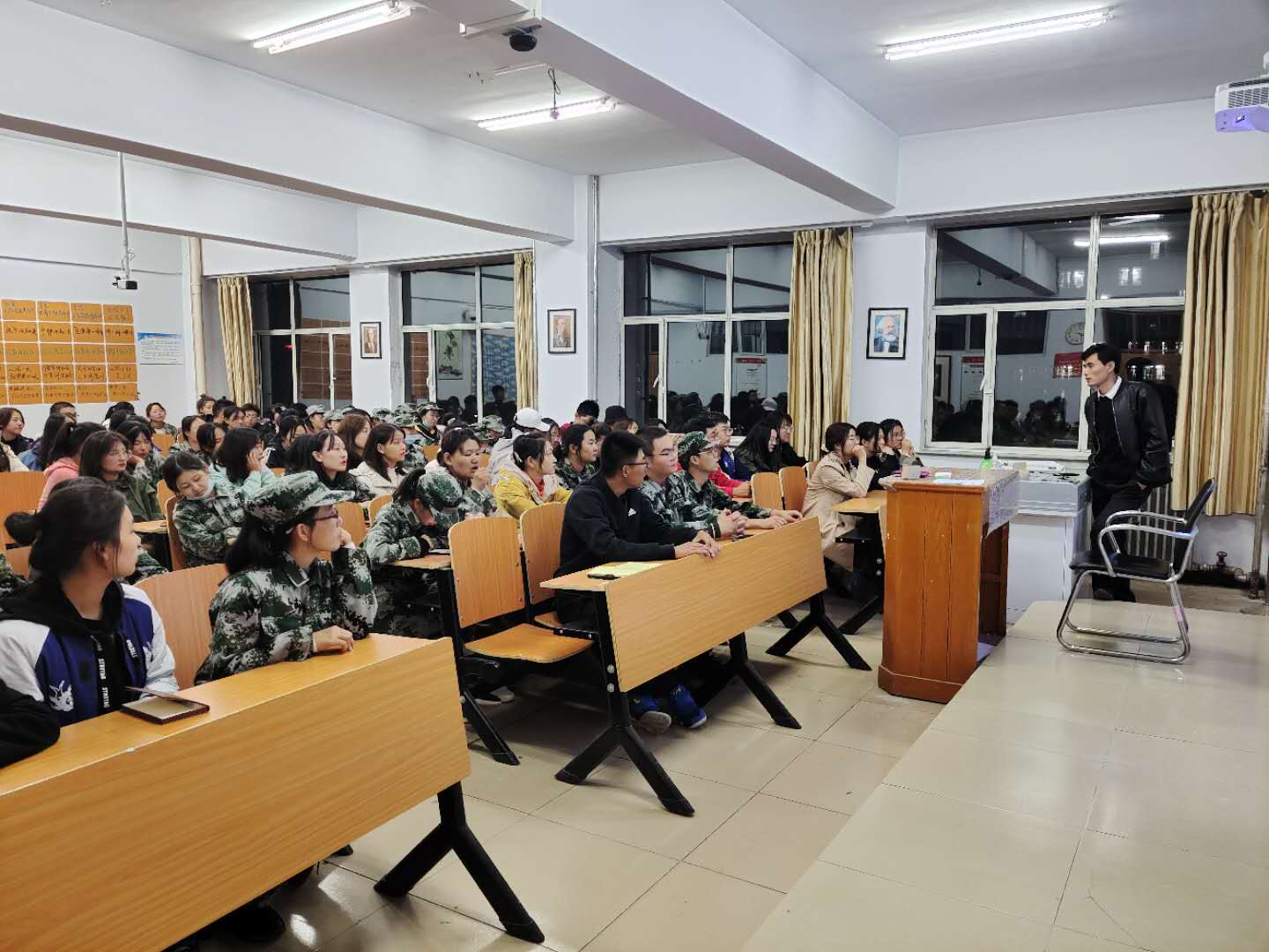 9月25日晚各新生班主任围绕大学生思想政教育、心理健康教育召开主题班会,引导学生坚定共产主义理想信念,树立良好的心态,不辜负党和人民的嘱托。
