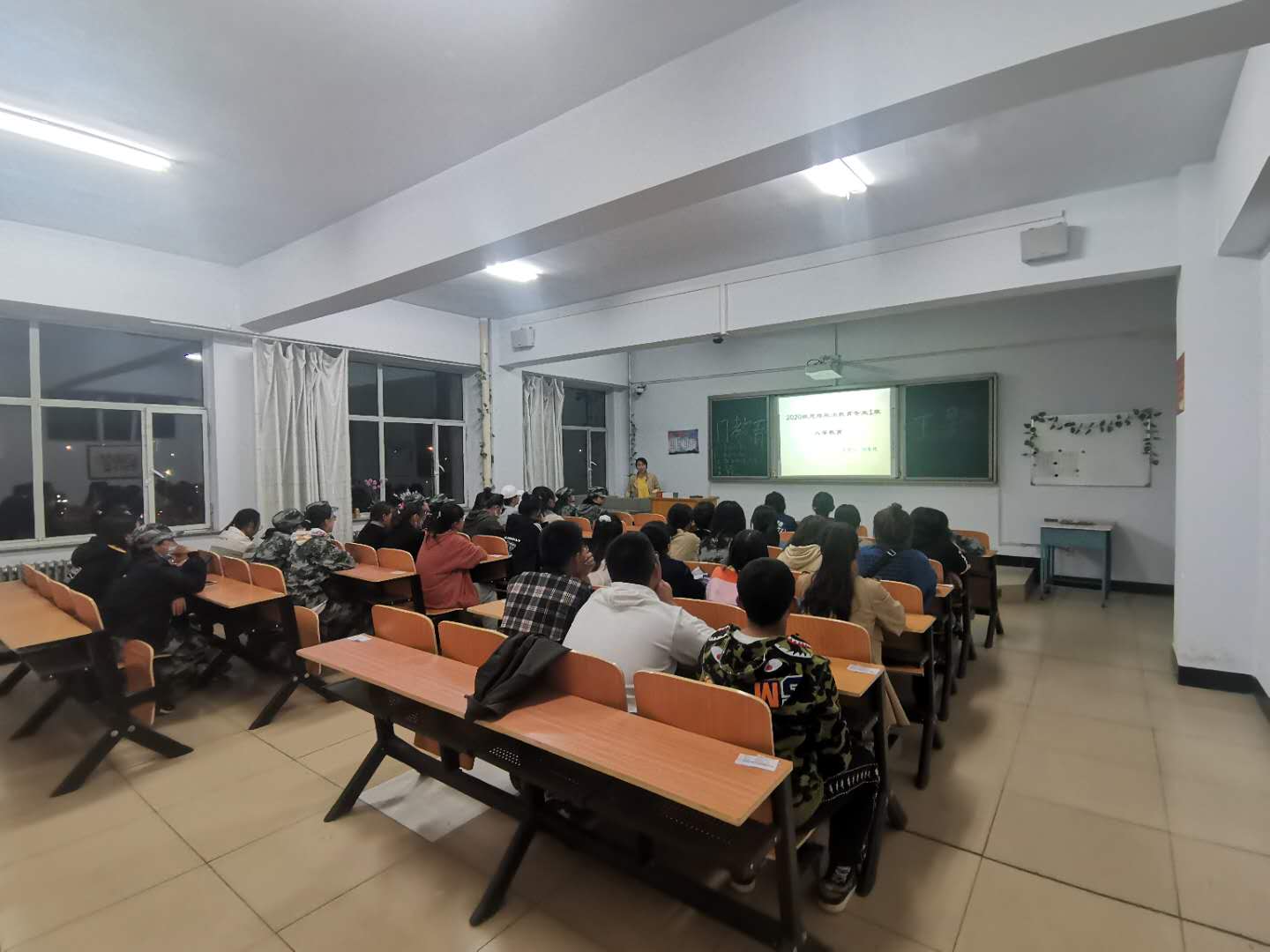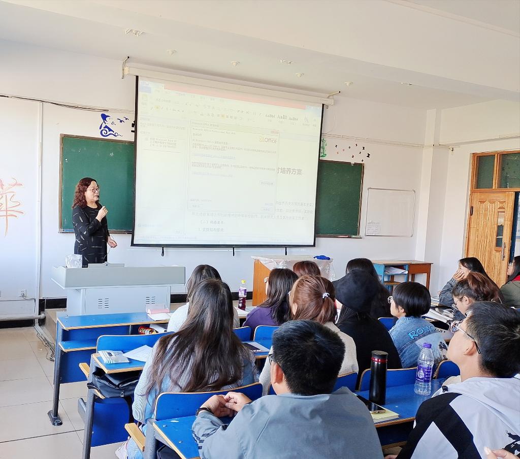 9月28日晚历史研室主任周瑞平、思政教研室主任刘春艳、法律教研室教师康永琴对本专业2020级学生就成绩考核、专业方向、就业前景、留降级、考研、升本等方面的内容进行了具体介绍,对人才培养方案的设计思路、培养目标、课程设置等进行详细讲解。