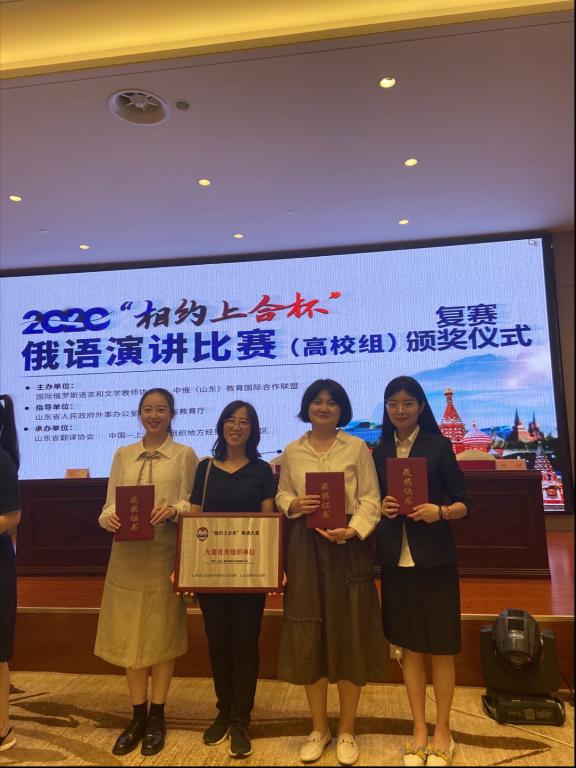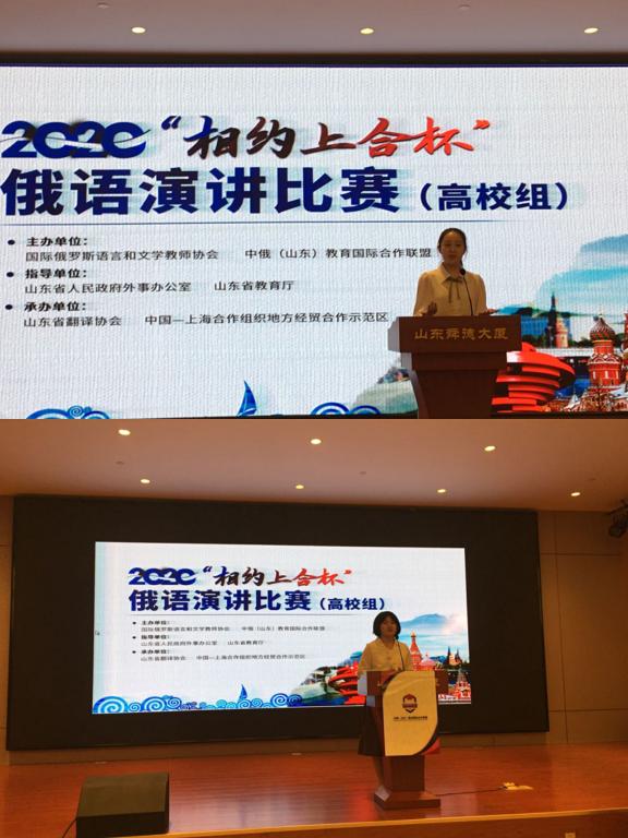 2020年9月25日,由山东省人民政府外事办公室和山东省教育厅指导,国际俄罗斯语言和文学教师协会和中俄(山东)教育国际合作联盟共同主办,山东省翻译协会和中国-上海合作组织地方经贸合作示范区共同组织承办的“相约上合杯”俄语大赛在山东济南举行。来自山东省内31所高校的84名俄语学子齐聚济南,共享这一省内参加高校最多、参加人数最多的俄语盛事。