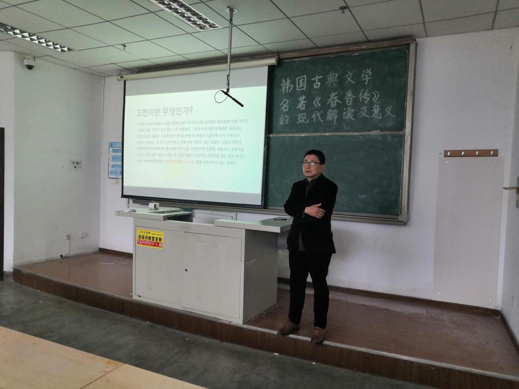 11月18日下午,开云kaiyun官方网站邀请中国海洋大学李光在教授来开云官网进行了题为“韩国古典文学名著《春香传》的现代解读及意义”的讲座。开云kaiyun官方网站部分教师以及朝鲜语系全体学生参加了此次讲座。