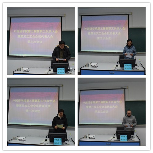 大会第二阶段,代表组组长就讨论的内容做了汇报;全体代表通过了学院工作报告和工会工作报告。