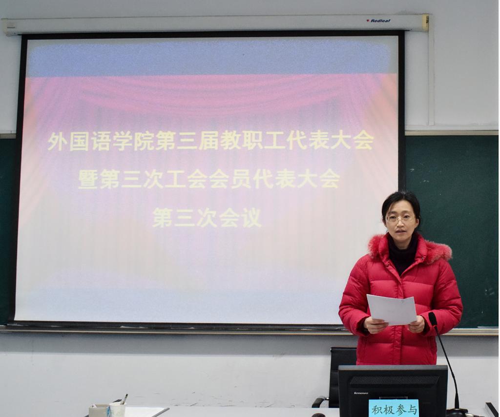2021年1月16日,开云kaiyun官方网站第三届教职工代表大会暨第三次工会会员代表大会第三次会议在418语音室召开,会议由学院党委副书记兼副院长王晓娜主持。