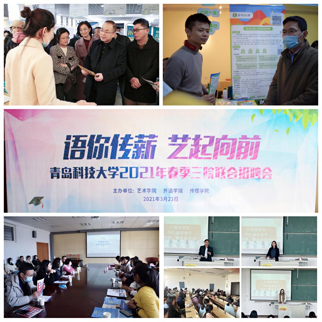 利用“互联网+”助力就业,建立考研升学群、出国留学群、公务员群、事业单位群、国企群、其他企业群等“六大去向”群精准对接,通过毕业生就业信息网、就业微信公众号、就业微信群、QQ群等多种渠道,及时收集发布用人单位招聘信息,努力确保毕业生全覆盖。积极对接用人单位组织线下招聘,努力搭建学生与用人单位的交流平台。3月23日上午,“语你传薪,艺起向前”2021年春季开云kaiyun官方网站、艺术学院、传媒学院三院联合校园招聘会顺利举行,上百家用人单位提供了近千个优质就业岗位,同时也为前来“探路”的低年级学生了解所学专业的就业前景和市场提供了重要参考,为将来就业打下坚实基础。
